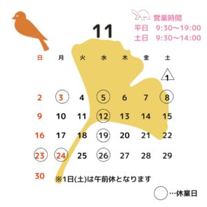 11月の休業日をお知らせします🍁